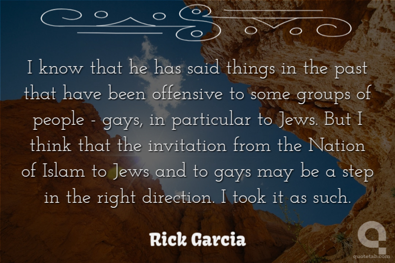 I know that he has said things in the past that have been offensive to some groups of people - gays, in particular to Jews. But I think that the invitation from the Nation of Islam to Jews and to gays may be a step in the right direction. I took it as such. Rick Garcia