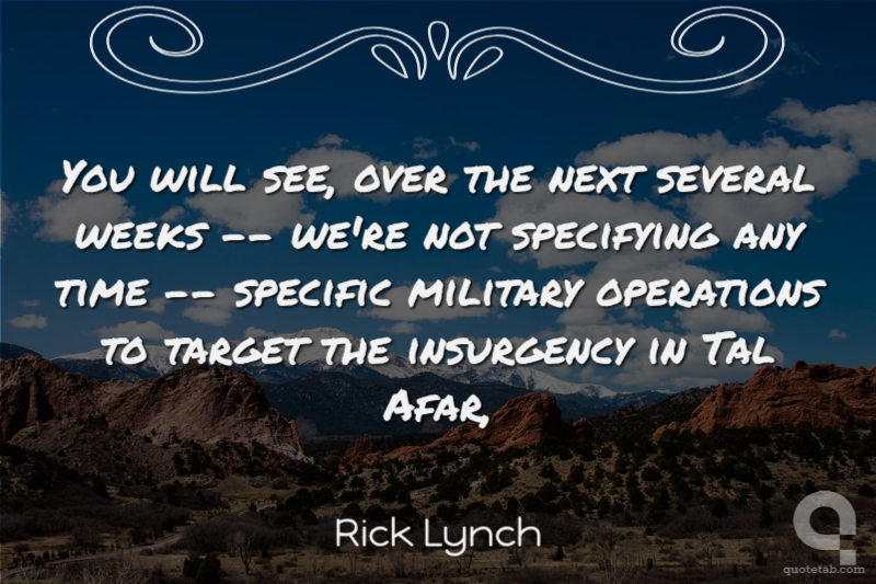 You will see, over the next several weeks -- we're not specifying any time -- specific military operations to target the insurgency in Tal Afar, Rick Lynch