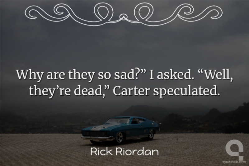 Why are they so sad?” I asked. “Well, they’re dead,” Carter speculated. Rick Riordan