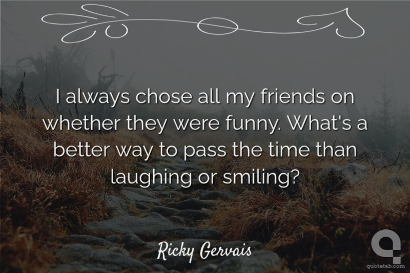 I always chose all my friends on whether they were funny. What's a better way to pass the time than laughing or smiling? Ricky Gervais