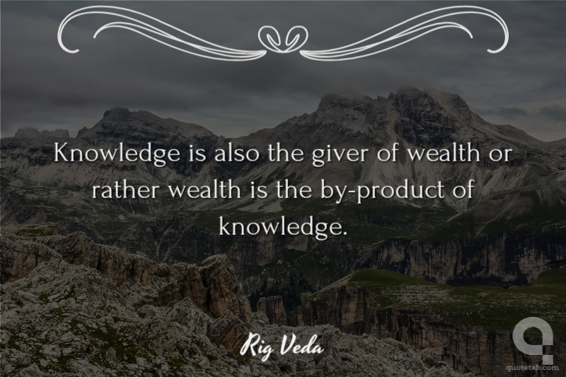 Knowledge is also the giver of wealth or rather wealth is the by-product of knowledge. Rig Veda
