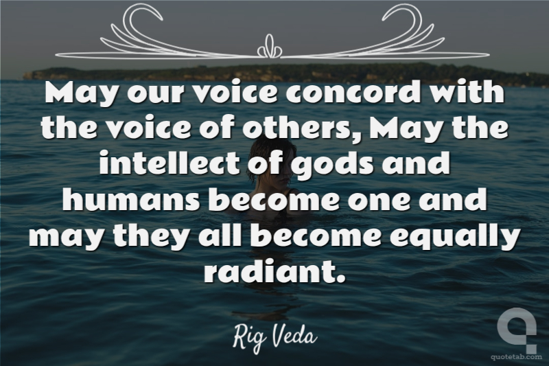 May our voice concord with the voice of others, May the intellect of gods and humans become one and may they all become equally radiant. Rig Veda