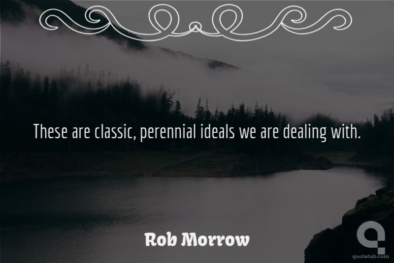 Rob Morrow These are classic, perennial ideals we are dealing with.