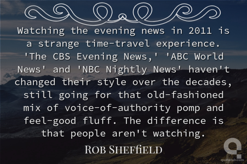 Watching the evening news in 2011 is a strange time-travel experience. 'The CBS Evening News,' 'ABC World News' and 'NBC Nightly News' haven't changed their style over the decades, still going for that old-fashioned mix of voice-of-authority pomp and feel-good fluff. The difference is that people aren't watching. Rob Sheffield