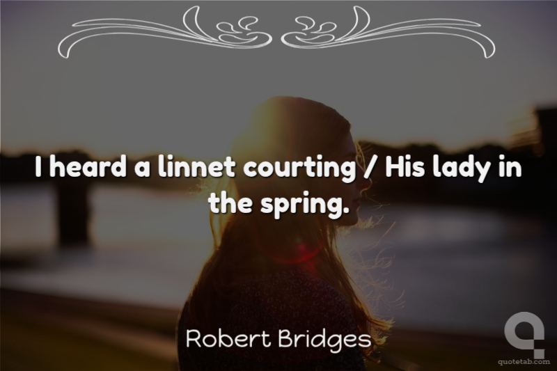 I heard a linnet courting / His lady in the spring. Robert Bridges