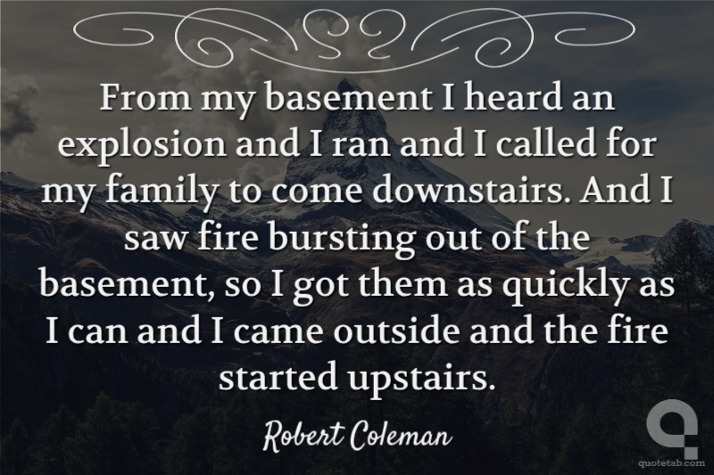 From my basement I heard an explosion and I ran and I called for my family to come downstairs. And I saw fire bursting out of the basement, so I got them as quickly as I can and I came outside and the fire started upstairs. Robert Coleman