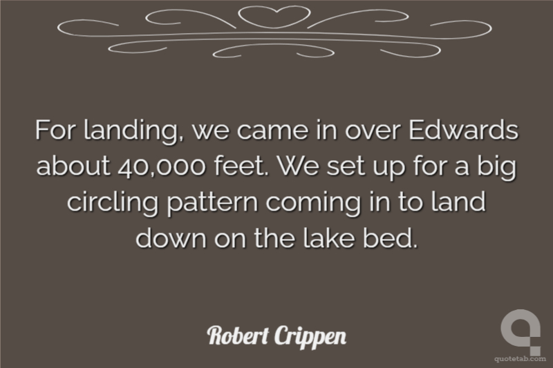 One of the jokes on our flight is that, if we have a normal entry day going, the plan is for me... to actually take the orbiter first and fly it for maybe 10 or 15 seconds and then hand it on over to Scooter. Duane G. Carey