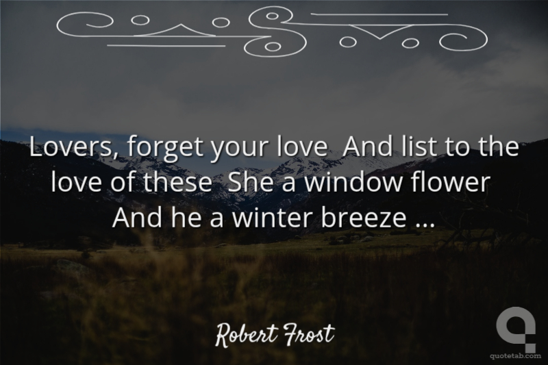 Lovers, forget your love And list to the love of these She a window flower And he a winter breeze ... Robert Frost