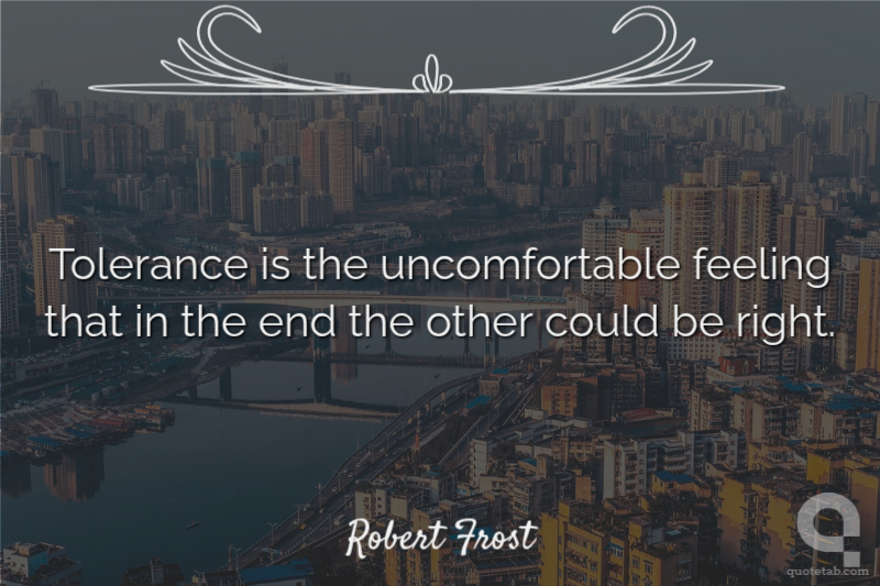 Tolerance is the uncomfortable feeling that in the end the other could be right. Robert Frost