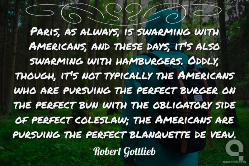 Paris, as always, is swarming with Americans, and these days, it's also swarming with hamburgers. Oddly, though, it's not typically the Americans who are pursuing the perfect burger on the perfect bun with the obligatory side of perfect coleslaw; the Americans are pursuing the perfect blanquette de veau. Robert Gottlieb