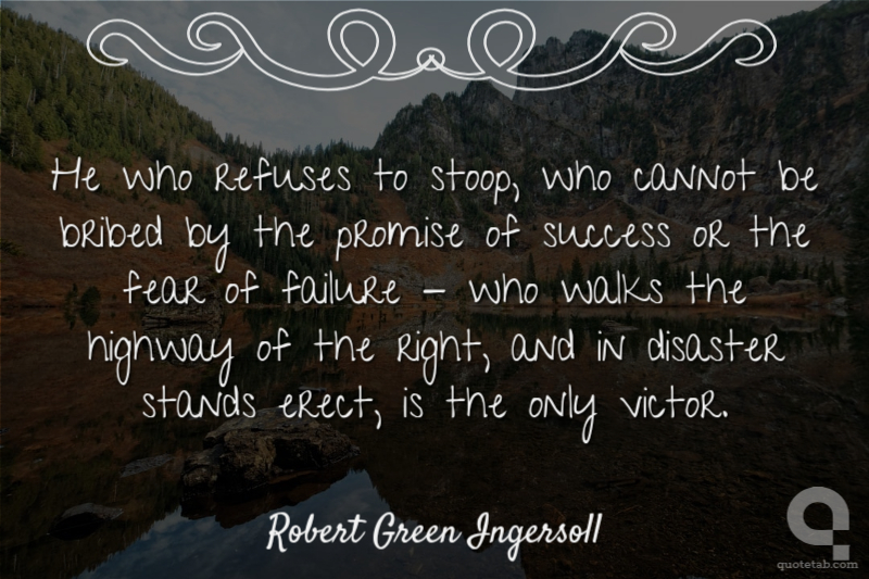 He who refuses to stoop, who cannot be bribed by the promise of success or the fear of failure - who walks the highway of the right, and in disaster stands erect, is the only victor. Robert Green Ingersoll