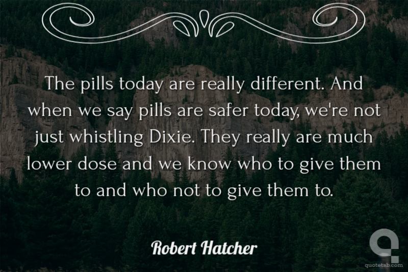 The pills today are really different. And when we say pills are safer today, we're not just whistling Dixie. They really are much lower dose and we know who to give them to and who not to give them to. Robert Hatcher