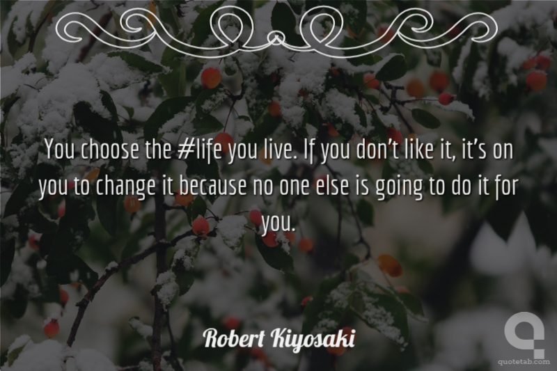 You choose the #life you live. If you don't like it, it's on you to change it because no one else is going to do it for you. Robert Kiyosaki