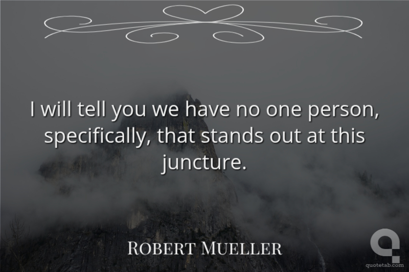 I will tell you we have no one person, specifically, that stands out at this juncture. Robert Mueller