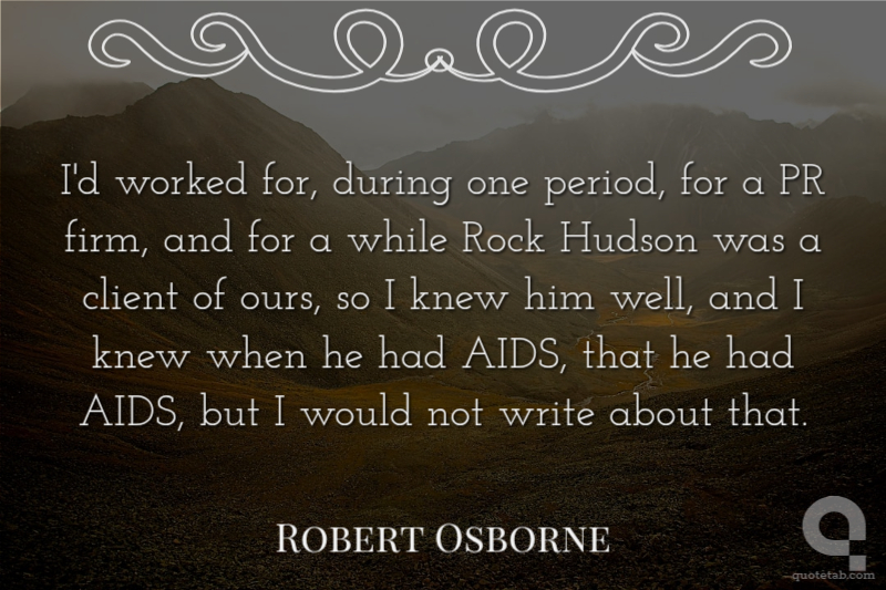 I'd worked for, during one period, for a PR firm, and for a while Rock Hudson was a client of ours, so I knew him well, and I knew when he had AIDS, that he had AIDS, but I would not write about that. Robert Osborne