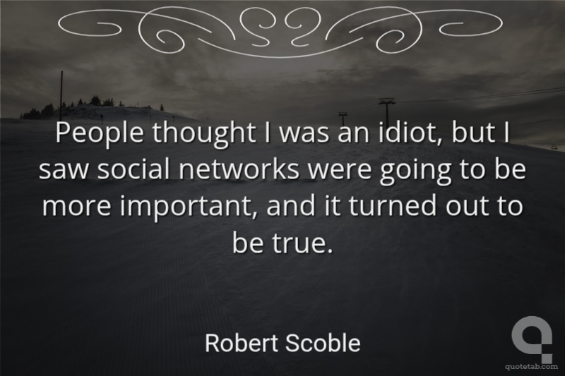 People thought I was an idiot, but I saw social networks were going to be more important, and it turned out to be true. Robert Scoble