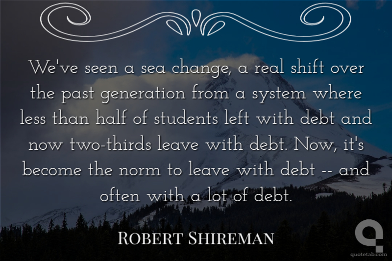We've seen a sea change, a real shift over the past generation from a system where less than half of students left with debt and now two-thirds leave with debt. Now, it's become the norm to leave with debt -- and often with a lot of debt. Robert Shireman