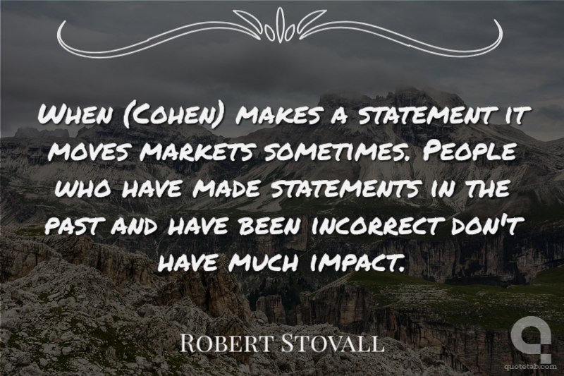 When (Cohen) makes a statement it moves markets sometimes. People who have made statements in the past and have been incorrect don't have much impact. Robert Stovall