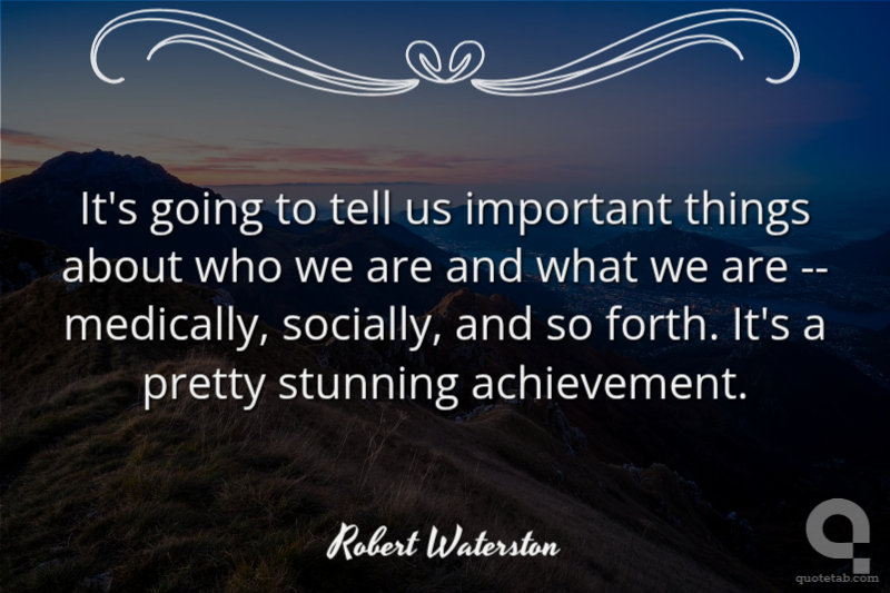 It's going to tell us important things about who we are and what we are -- medically, socially, and so forth. It's a pretty stunning achievement. Robert Waterston
