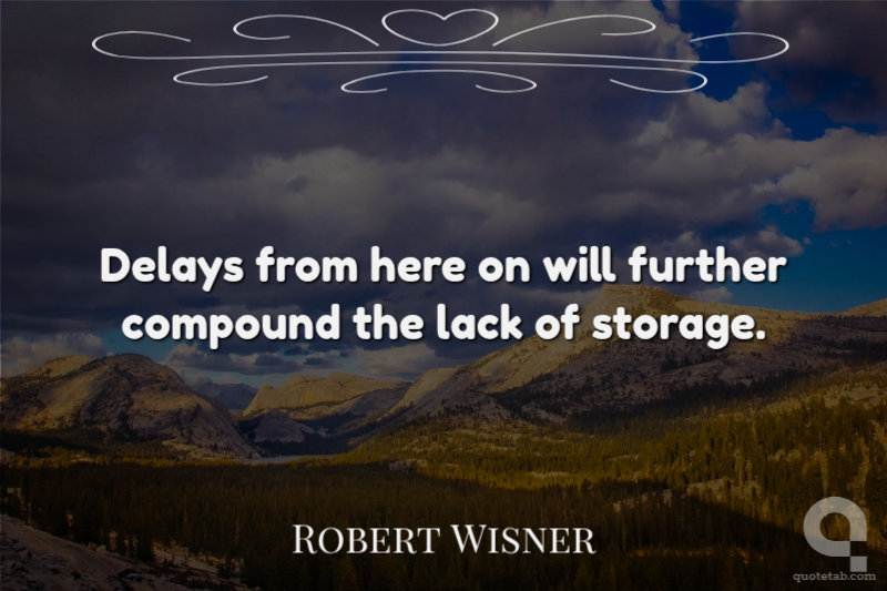 Delays from here on will further compound the lack of storage. Robert Wisner
