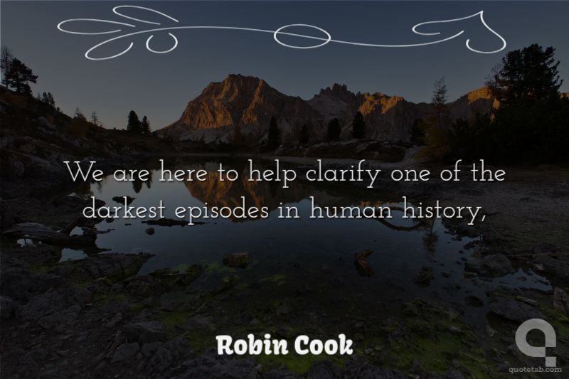 We are here to help clarify one of the darkest episodes in human history, Robin Cook