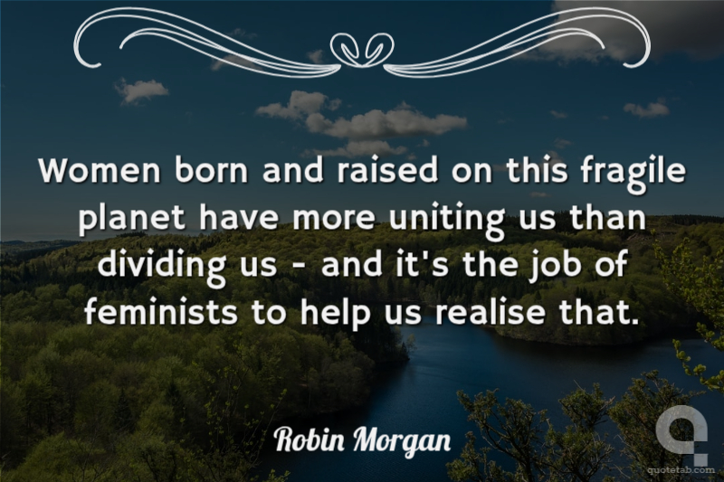 Women born and raised on this fragile planet have more uniting us than dividing us - and it's the job of feminists to help us realise that. Robin Morgan
