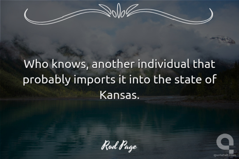 Who knows, another individual that probably imports it into the state of Kansas. Rod Page