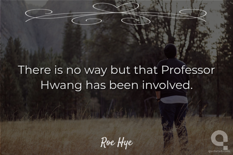 There is no way but that Professor Hwang has been involved. Roe Hye