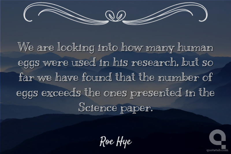 We are looking into how many human eggs were used in his research, but so far we have found that the number of eggs exceeds the ones presented in the Science paper. Roe Hye