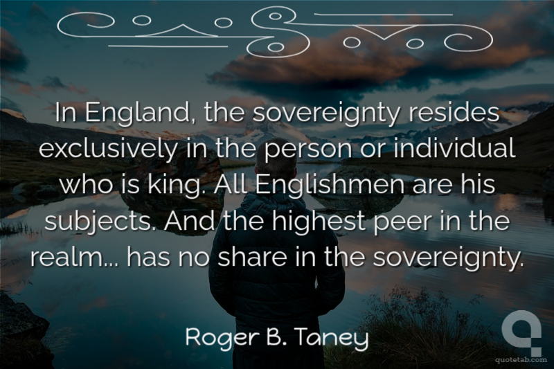 In England, the sovereignty resides exclusively in the person or individual who is king. All Englishmen are his subjects. And the highest peer in the realm... has no share in the sovereignty. Roger B. Taney