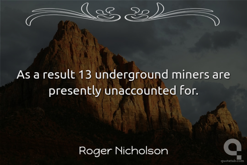 As a result 13 underground miners are presently unaccounted for. Roger Nicholson