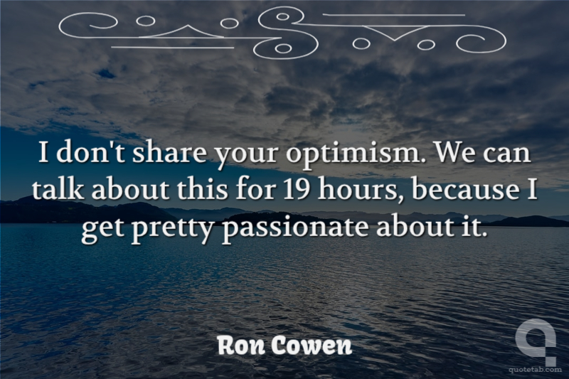 I don't share your optimism. We can talk about this for 19 hours, because I get pretty passionate about it. Ron Cowen