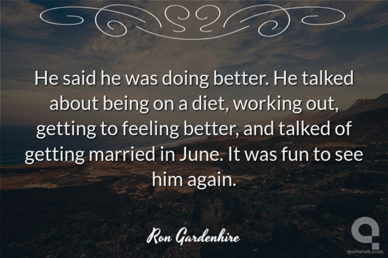 He said he was doing better. He talked about being on a diet, working out, getting to feeling better, and talked of getting married in June. It was fun to see him again. Ron Gardenhire