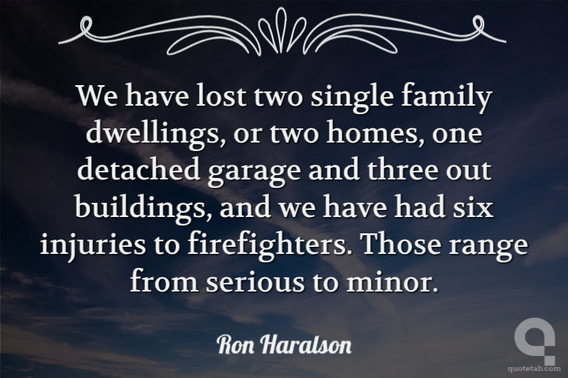 We have lost two single family dwellings, or two homes, one detached garage and three out buildings, and we have had six injuries to firefighters. Those range from serious to minor. Ron Haralson