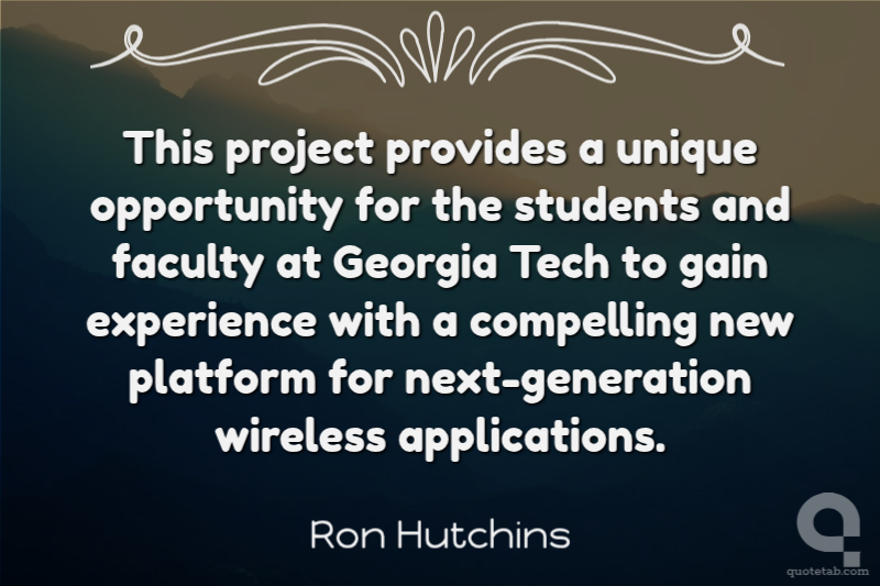 This project provides a unique opportunity for the students and faculty at Georgia Tech to gain experience with a compelling new platform for next-generation wireless applications. Ron Hutchins