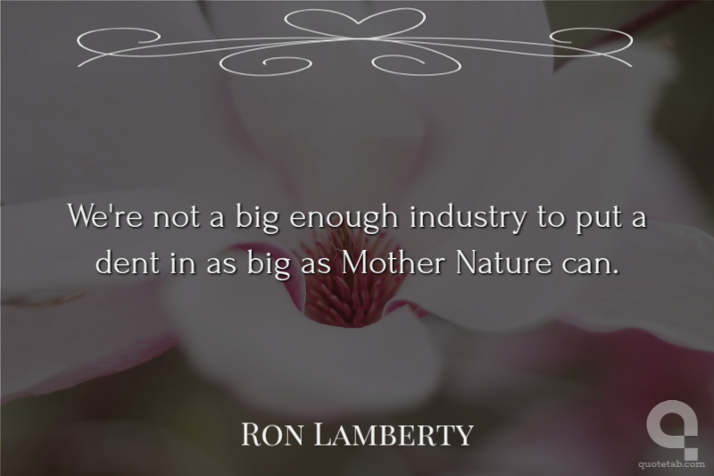 We're not a big enough industry to put a dent in as big as Mother Nature can. Ron Lamberty