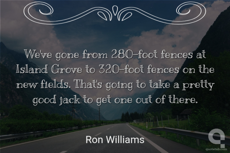 We've gone from 280-foot fences at Island Grove to 320-foot fences on the new fields. That's going to take a pretty good jack to get one out of there. Ron Williams