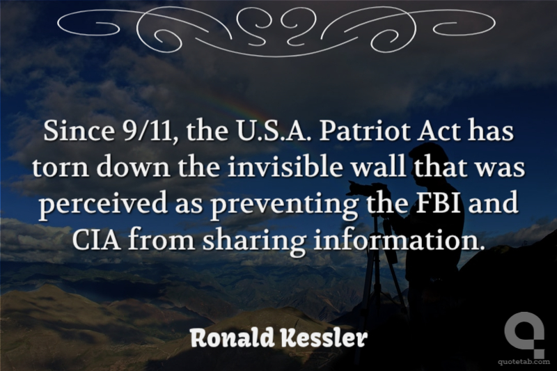 Since 9/11, the U.S.A. Patriot Act has torn down the invisible wall that was perceived as preventing the FBI and CIA from sharing information. Ronald Kessler