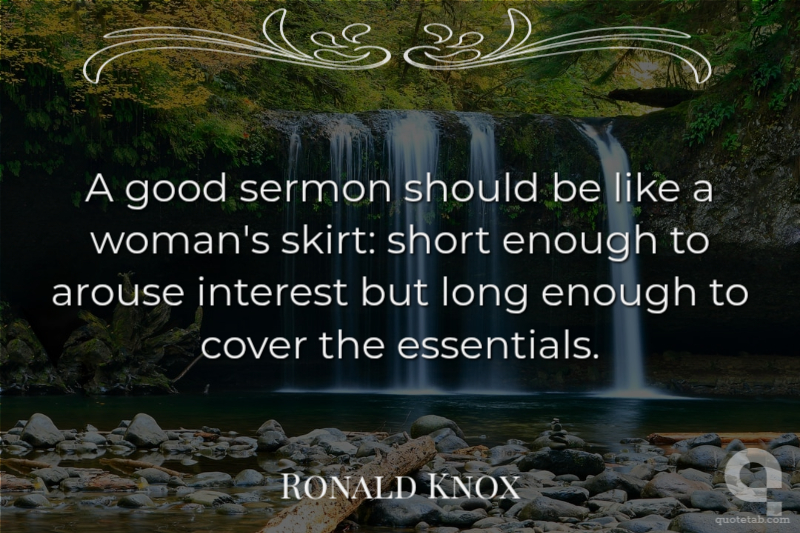 A good sermon should be like a woman's skirt: short enough to arouse interest but long enough to cover the essentials. Ronald Knox