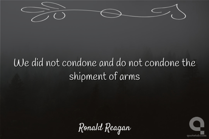 We did not condone and do not condone the shipment of arms Ronald Reagan