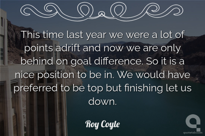This time last year we were a lot of points adrift and now we are only behind on goal difference. So it is a nice position to be in. We would have preferred to be top but finishing let us down. Roy Coyle