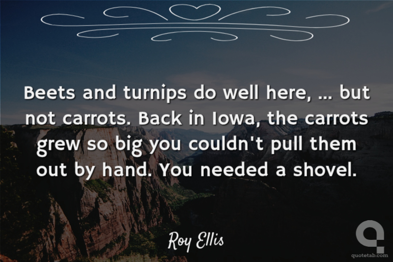 Beets and turnips do well here, ... but not carrots. Back in Iowa, the carrots grew so big you couldn't pull them out by hand. You needed a shovel. Roy Ellis
