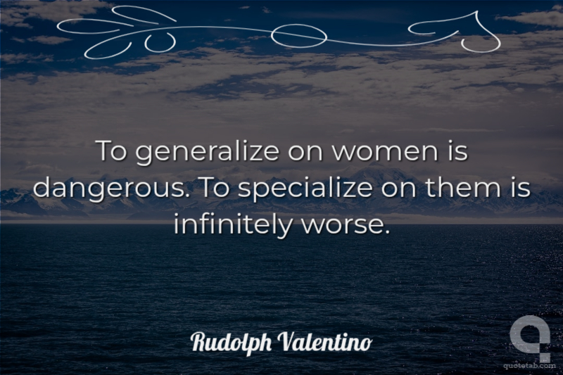 To generalize on women is dangerous. To specialize on them is infinitely worse. Rudolph Valentino