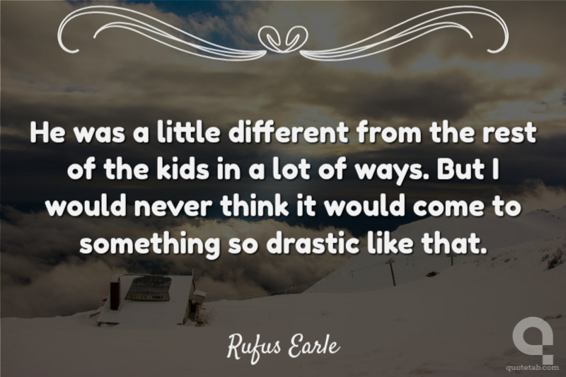 He was a little different from the rest of the kids in a lot of ways. But I would never think it would come to something so drastic like that. Rufus Earle