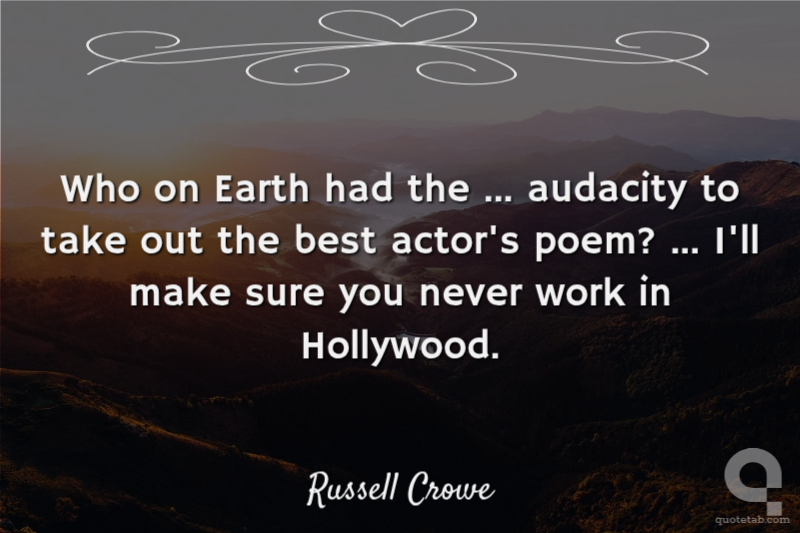 Who on Earth had the ... audacity to take out the best actor's poem? ... I'll make sure you never work in Hollywood. Russell Crowe