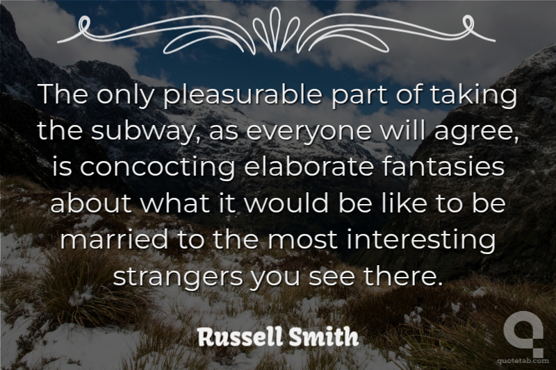 The only pleasurable part of taking the subway, as everyone will agree, is concocting elaborate fantasies about what it would be like to be married to the most interesting strangers you see there. Russell Smith