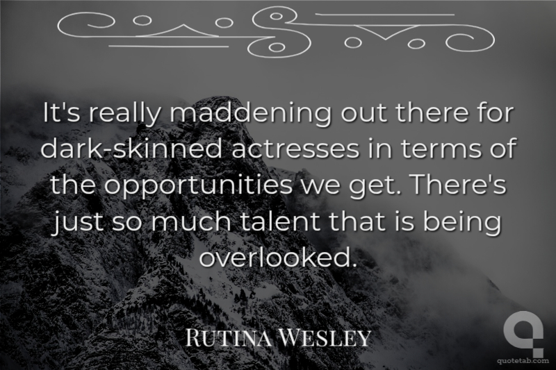 It's really maddening out there for dark-skinned actresses in terms of the opportunities we get. There's just so much talent that is being overlooked. Rutina Wesley