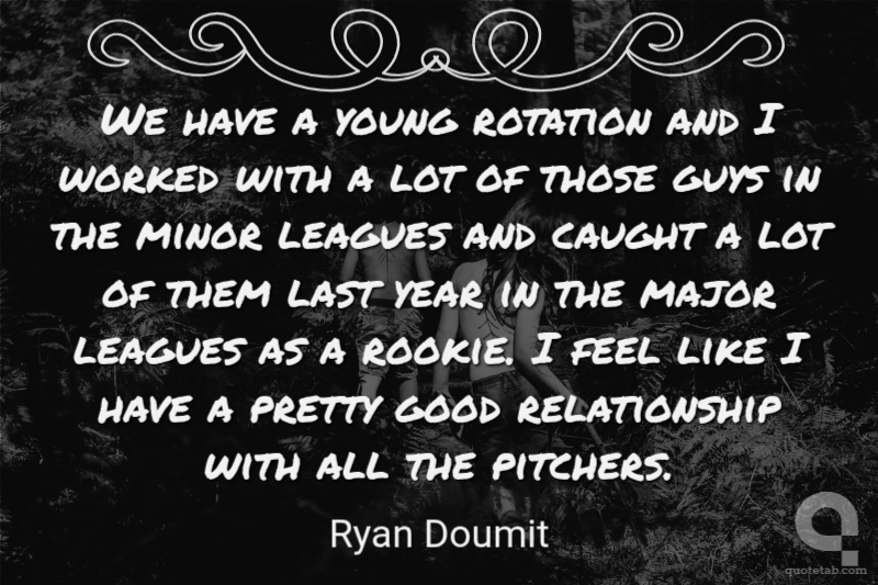 We have a young rotation and I worked with a lot of those guys in the minor leagues and caught a lot of them last year in the major leagues as a rookie. I feel like I have a pretty good relationship with all the pitchers. Ryan Doumit
