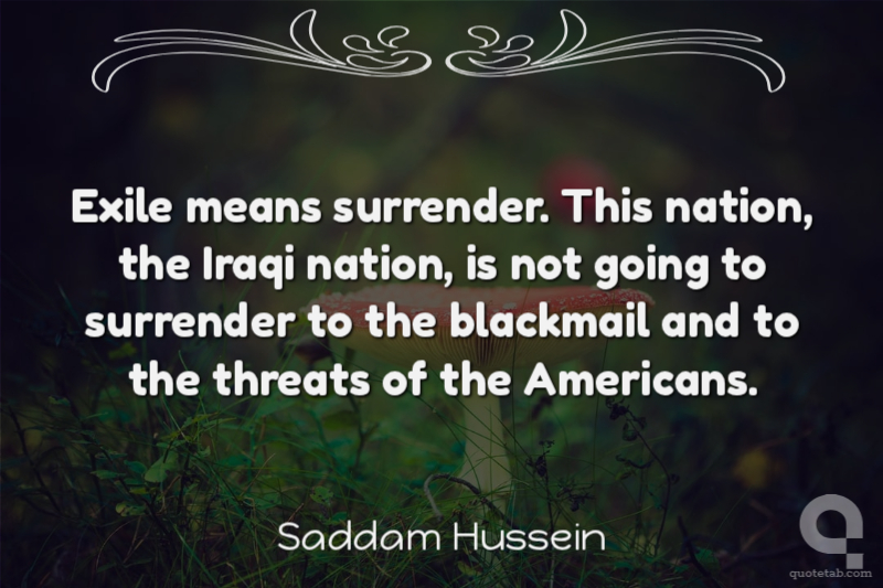 Exile means surrender. This nation, the Iraqi nation, is not going to surrender to the blackmail and to the threats of the Americans. Saddam Hussein
