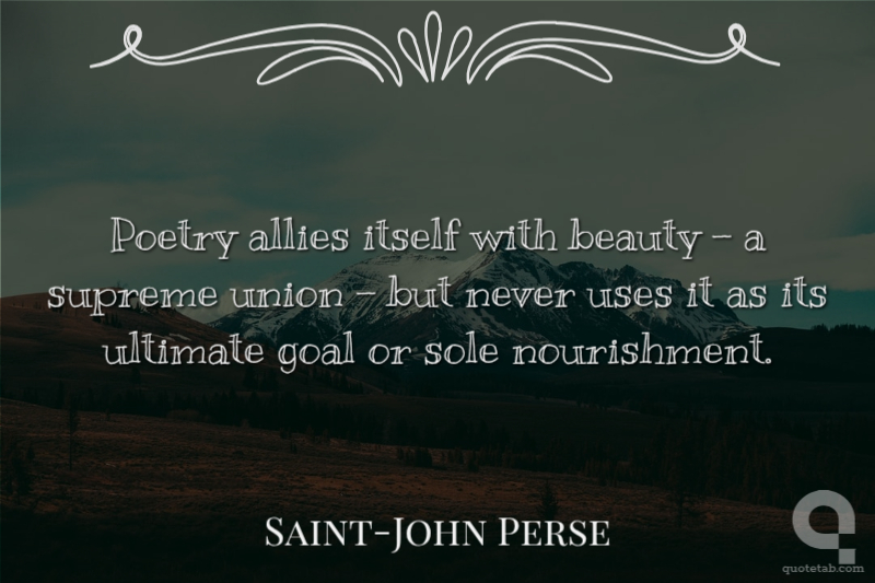 Poetry allies itself with beauty - a supreme union - but never uses it as its ultimate goal or sole nourishment. Saint-John Perse